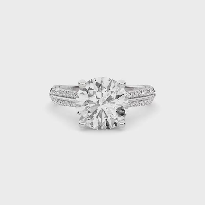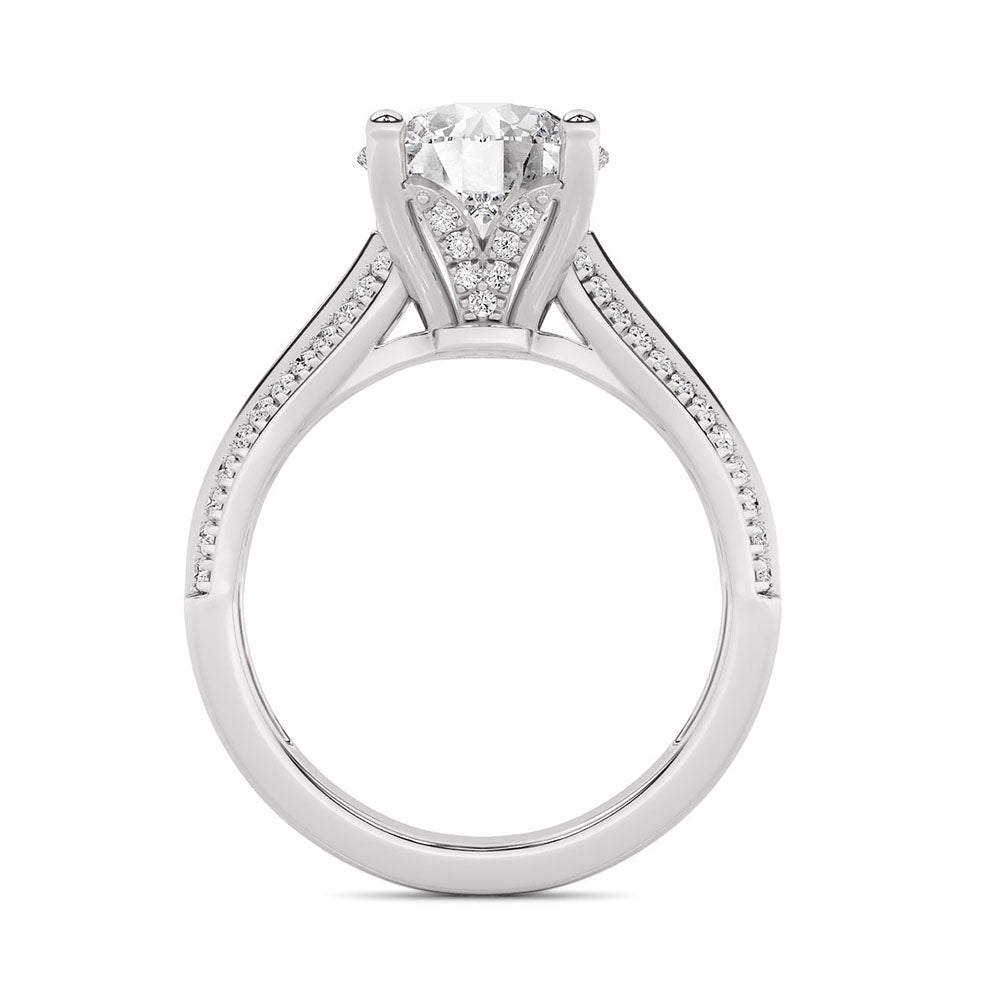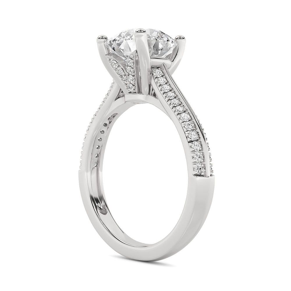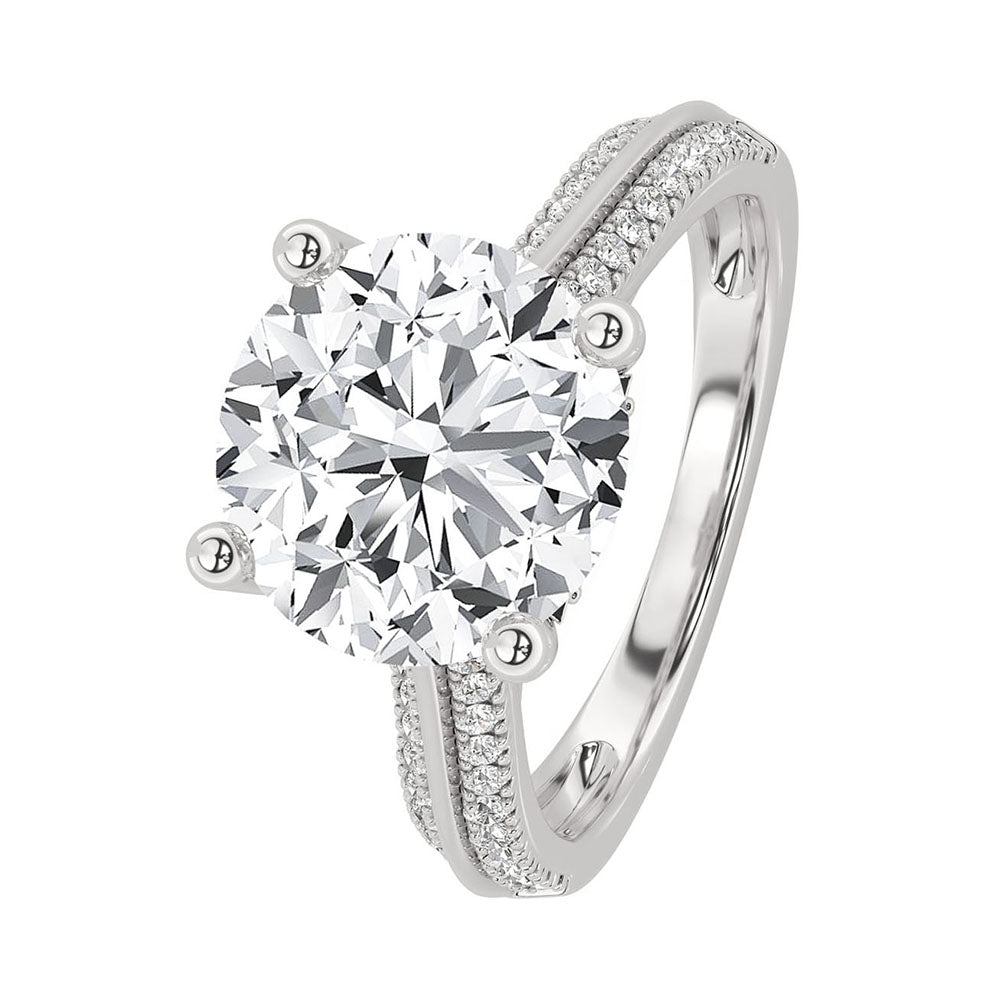 Anillo Compromiso Oro Blanco 18K Con 2 Quilates De Diamante Al Centro Y 2.5 Quilates De Diamante Totales Corte Redondo L