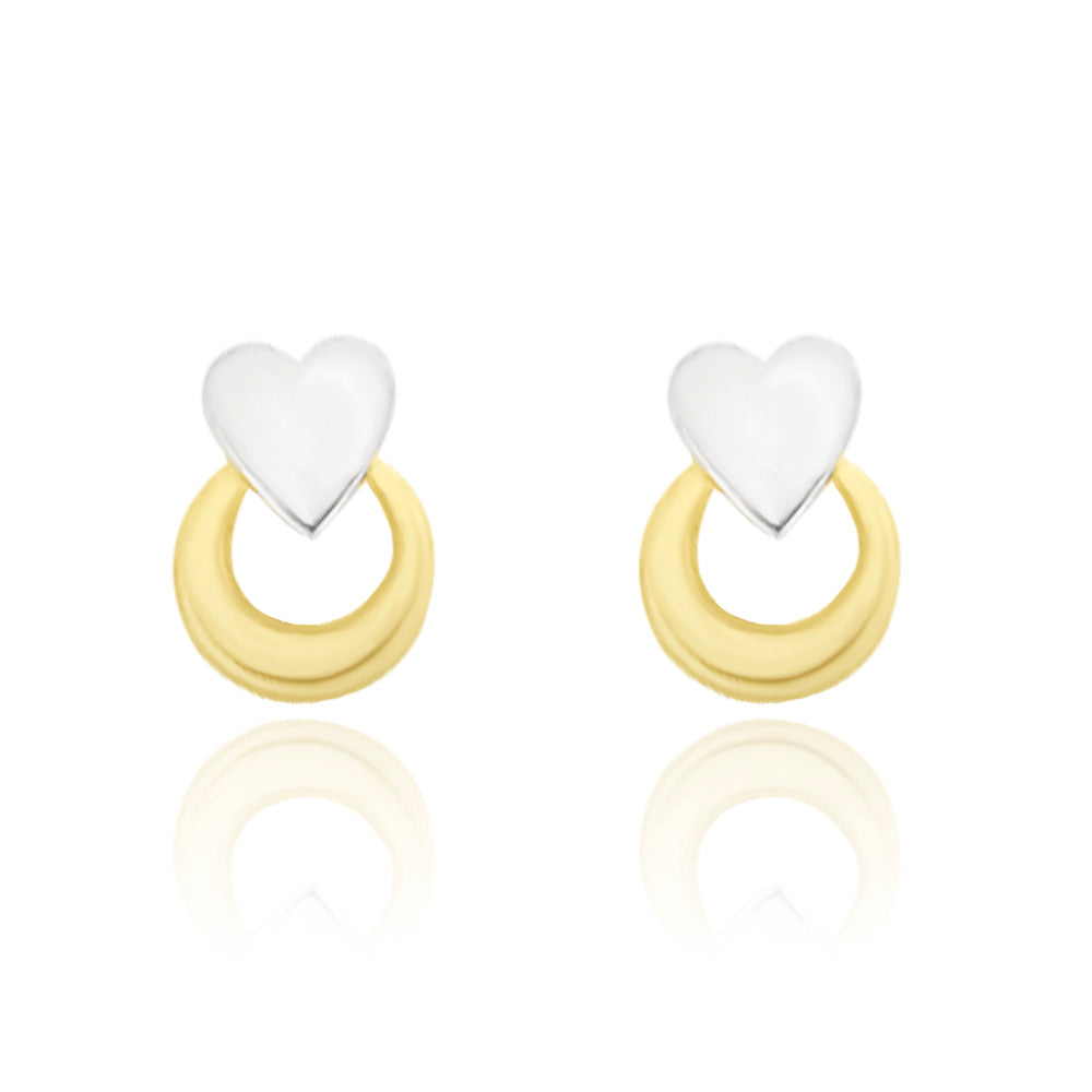 Broqueles Corazón En Oro Amarillo Y Blanco De 14K IND0472-03P14